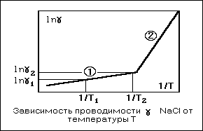 Для многих ионных кристаллов удельная электропроводность экспоненциально зависит от температуры