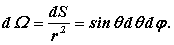 . Телесный угол, в пределах которого описанный элемент площади виден из начала координат, имеет вид: