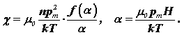 Легко видеть, что магнитная восприимчивость среды определяется объемной концентрацией диполей, величиной их магнитного момента и абсолютной температурой. В "сильных" полях (или при "низких" температурах) величина