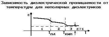 | В температурной зависимости диэлектрической проницаемости неполярных диэлектриков резкое уменьшение Состояния: 1 - твердое, 2 - жидкое, 3 - газообразное |