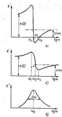 (в) диэлектрика с резонансной поляризацией при различных параметрах эквивалентного осциллятора