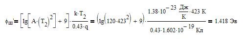 2) Вычислить высоту барьера - φш, эВ;