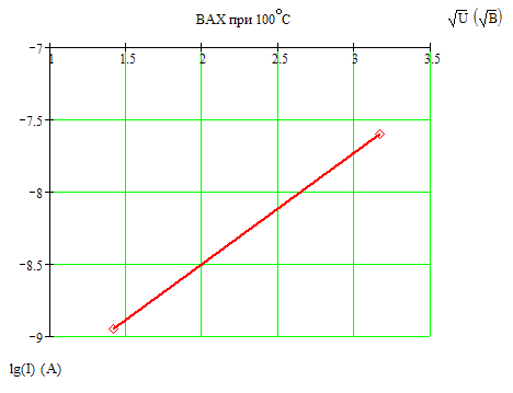 Построим по двум крайним точкам ВАХ при температуре T1 = 100ºC (T1 = 373 К).