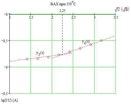 3) Перестроить исходные ВАХ в координатах по Пулу – Френкелю lnI/U, A ( U1/2 , B1/2 ) и найти параметры βп-фэ, βп-фр, φш и величину ε..