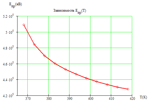 2. Считая, что в указанной структуре МДП будет наблюдаться тепловой пробой, рассчитать и построить зависимость Eпр = f(T), используя модель тепловой теории пробоя тонких плёнок по Клейну.