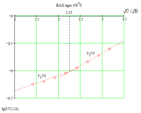 Построим по двум крайним точкам ВАХ при температуре T1 = 100ºC (T1 = 373 К).