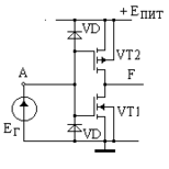 (T=850C), что определяется токами утечки охранных диодов. Напряжение переключения ЛЭ, как правило, составляет U = Eпит / 2.