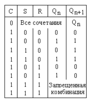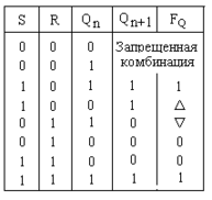 Оно получено на основании использовния карт Карно при анализе связи состояний выходов триггера с возможным набором управляющих сигналов S и R [2]. Знаками n и n+1 обозначено состояние выхода Q до и после прихода управляющих сигналов соответственно.