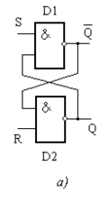 | Рис.1.5. RST-триггер на ЛЭ И-НЕ (а); |