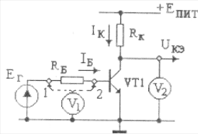 1. Измерить и построить входную и передаточную характеристики транзисторного ключа для трех комбинаций значений сопротивлений резисторов Rк и Rб.