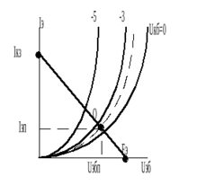 Положение рабочей точки на нагрузочной прямой можно определить по току IЭп или по напряжению UКБп. Координаты рабочей точки определяют напряжение между базой и эмиттером по постоянному току Эбп.
