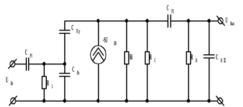 Рис. 4.4 – модель усилителя в диапазоне средних звуковых частот.