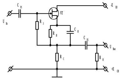 Рис. 4.5 – принципиальная схема усилителя на ПТ по схеме с общим стоком.