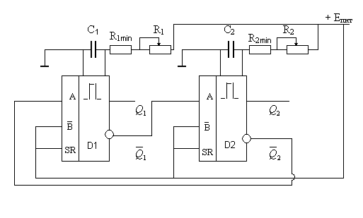 Мультивибратор (МВ) генерирует прямоугольные импульсы с регулируемым периодом следования для запуска ждущего мультивибратора