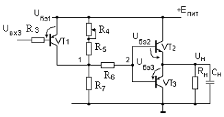 транзистор VT3 закрыт, а VT2 открыт (если