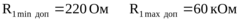 Найдём максимально и минимально допустимую величину R1(аналогично для (R2+R3)):