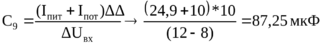 где t = 10 мс (полупериод сетевого напряжения), Uвх = 12-8 = 4В, Iпит – ток нагрузки.