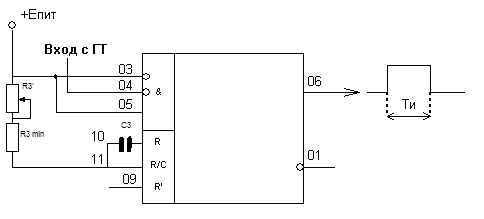 Ждущий мультивибратор (ГТи) формирует прямоугольный импульс с заданной длительностью