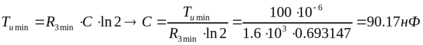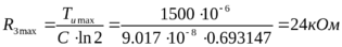 Рассмотрим ограничения , накладываемые на внешние R, C компоненты. Rmin снизу ограничивается максимально допустимым током базы транзистора VT1. В технических условиях указано Rmin=1.6кОм, что соответствует току базы транзистора VT1 равному приблизительно 2.7мА. Rmax сверху ограничивается требованием обеспечения насыщенного режима транзистора VT1. В технических условиях указано, что Rmax=30кОм. Емкость конденсатора С должна быть меньше или равна 1000мкФ, причём допускается применение электролитических конденсаторов.