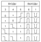 положительный) дает прямой запуск триггера, входы 03, 04— инверсные (активный перепад —