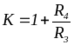 Если К=1, то значения резисторов R1 и R2 определяются по первым двум формулам, а R3 и R4 выбираются, исходя из рассмотренных для этого случая условий (см. п. 2.10.).