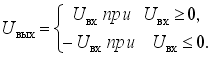 Прежде всего рассмотрим принцип работы ОУ1. При положительном входном напряжении он работает как инвертирующий усилитель. В этом случае напряжение U2 отрицательно, т.е. диод VD1 проводит, а VD2 закрыт, поэтому U1 = –Uвх. При отрицательном входном напряжении U2 положительно, т.е. диод VD1 закрыт, а VD2 проводит и замыкает цепь отрицательной обратной связи усилителя, которая препятствует насыщению усилителя ОУ1. Поэтому точка суммирования остается под нулевым потенциалом. Поскольку диод VD1 закрыт, напряжение U1 также равно нулю. Справедливы соотношения: