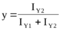 Для этой схемы (считая что все интегральные транзисторы идентичны и пренебрегая базовыми токами) определим y-параметр деления токов I1 и I2 :