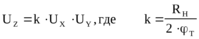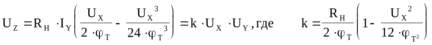 Таким образом, выходное напряжение UZ пропорционально произведению входного напряжения UX и тока IY. Если сделать ток IY пропорциональный напряжению UY, то мы имеем перемножитель двух сигналов. Т.е. для построения перемножителя необходимо иметь высокоточный преобразователь напряжение - ток.