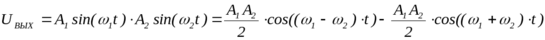 При подаче на входы АПС синусоидальных сигналов различной частоты напряжение на выходе будет определяться в соответствии с математическим выражением для произведения двух синусов: