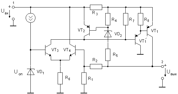 Рис. 5. Стабилизатор напряжения с малым напряжением потерь