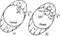 В замкнутой обмотке ротора, один из проводников которой показан на рис. 3.14, а, под действием синусоидальной индуцированной ЭДС возникает синусоидальный электрический ток. Обмотка ротора обладает индуктивностью, поэтому ток будет на некоторый угол, меньший л/2, отставать по фазе от ЭДС. Проводник на рис. 3.14, б показан в момент времени, когда наводимая в нем ЭДС максимальна, при этом ток совпадает по направлению с ЭДС.