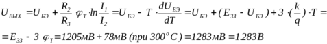 Таким образом, выходное напряжение схемы источника опорного напряжения при ТКНU(ВЫХ)=0 составит 1,283 В. Заметим, что UВЫХ в основном определяется шириной запрещённой зоны (EЗЗ = 1205 мВ для кремния). Отсюда и название для данного источника опорного напряжения.