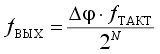 Регистр содержит текущую фазу выходного сигнала в виде целого числа, которое будучи поделено на 2N, где N -разрядность сумматора, равно доле периода. Увеличение разрядности регистра повышает только разрешающую способность этой доли. Частота выходного сигнала равна произведению частоты тактов fтакт на приращение фазы в каждом периоде тактов. При использовании N-разрядного сумматора частота выходного сигнала будет равна