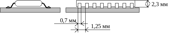 Среди миниатюризированных современных корпусов микросхем, предназначенных для припаивания только на стороне установки микросхем, можно в качестве примера привести следующие: