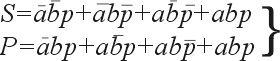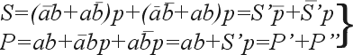 Уравнения, описывающие работу полного двоичного сумматора, представленные в совершенной дизъюнктивной нормальной форме (СДНФ), имеют вид:
