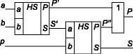 Он (рис. 4) имеет три входа: a, b — для двух слагаемых и p — для переноса из предыдущего (более младшего) разряда и два выхода: S — сумма, P — перенос в следующий (более старший) разряд. Обозначением полного двоичного сумматора служат буквы SM. Работу его отражает таблица истинности 3 (табл. 3).