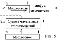 Действия 3 и 4 повторяются n раз ( n - разрядность сомножителей )