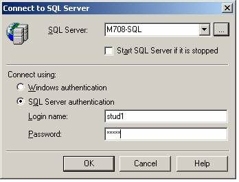 Имя сервера (M708-SQL - выбрать из списка имен серверов и щелкнуть левой кнопкой мыши).