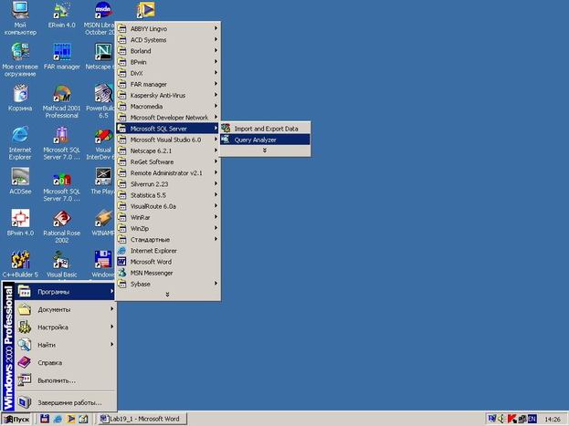 2. SQL Query Analyser, работающий на компьютере Pentium под управлением операционной системы Windows 2000 Professional.