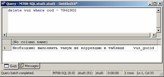 select ‘Необходимо удалить старую запись из таблицы vuz’ [F5]