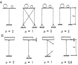 14.25. Расчетные длины колонн отдельно стоящих опор при проверке устойчивости допускается определять по черт. 10.