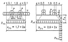 от низа шпалы (см. черт. 3) шириной by1 = 2,7 + 2а. Интенсивность вертикального давления следует определять по формуле