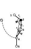 Как мы уже говорили, ближний порядок определяется наиболее сильными взаимодействиями между атомами, геометрические характеристики которых длина и угол ковалентной связи. Обозначим энергии этого взаимодействия Vs и Vb соответственно (рисунок). В случае линейного полимера в ближний порядок входят первые ближайшие соседи ( атомы 2 и 4, если за исходный принят атом 3) и, частично атомы второй координационной сферы, находящиеся в той же молекуле, что и исходный атом (атомы 5 и 1), так как их положение относительно атома 3 также однозначно определяется взаимодействиями Vs и Vb (рисунок).