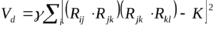 V = (3 / 16 d02)∑[ (Ri – Rj)2 – d02]2 + (3 / 8d02)∑[(Rj – Ri)(Rl – Ri) – (d02/3)]2