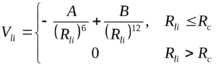 где: А и В – коэффициенты, характеризующие отталкивание и притяжение атомов и выбираемые таким образом, чтобы энергия Vv-v принимала минимальное значение при заданном расстоянии Rli0 между атомами, непосредственно не связанными ковалентными связями (в случае селена значение Rli0 определяется по положению второго максимума экспериментальной ФРРА и составляет 3,7 Å); Rc45 Å – максимальное расстояние, на котором учитывается действие сил Ван-дер-Ваальса (как правило 4 -5 Å).