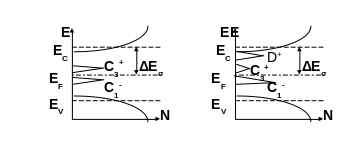 торая причина, характерная для аморфного кремния, заключается в высокой плотности локализованных состояний, обусловленных собственными дефектами, в запрещенной зоне полупроводника. Это обусловлено потерей дальнего порядка в условиях жесткой четырёхкоординированной структурной сетки. N