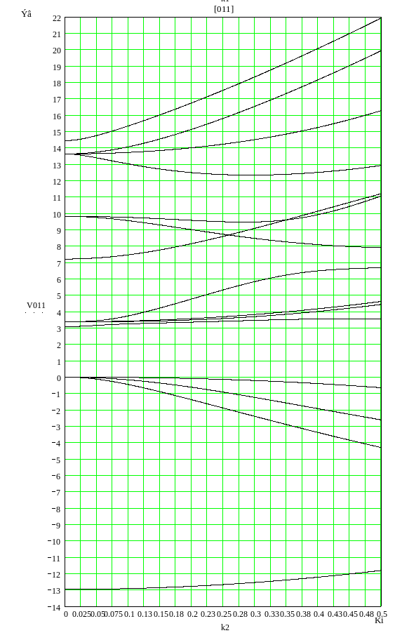 В направлении [011] наблюдается минимум энергии зоны проводимости E=3.081 в точке k=0