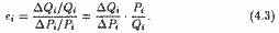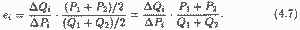 А использование (4.3) даст различный результат в зависимости от того, какой из двух уровней цены и объема примем при определении P/Q (начальную или конечную точку дельты Q и P) Чтобы избежать неопределенностей: