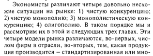 не следует полагать, что все разнообразие рыночных форм, существующих в реальной действительности, исчерпывается указанными пятью типами строения рынка. Наука редуцирует мн-во конкретных порядков к чистым формам, число которых ограничено и которые обладают более простыми свойствами. Благодаря этому становится возможным теоретический анализ экономических процессов, невзирая на все их многообразие, наблюдаемое в истории