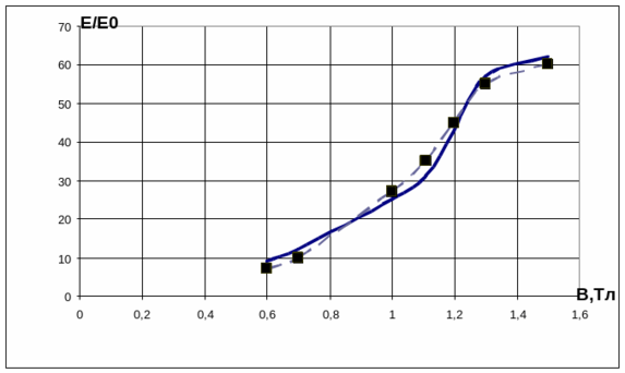 Снять зависимость относительной ЭДС E/E0 от магнитной индукции В для образца из алюминия. Результаты эксперимента нанести на график, полученный в п. 2 домашнего задания.